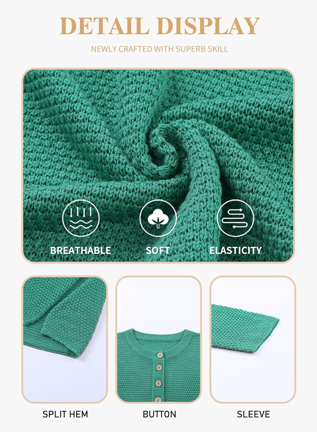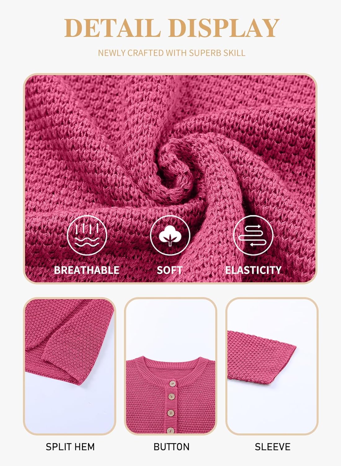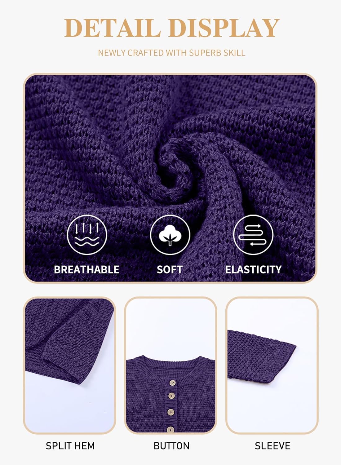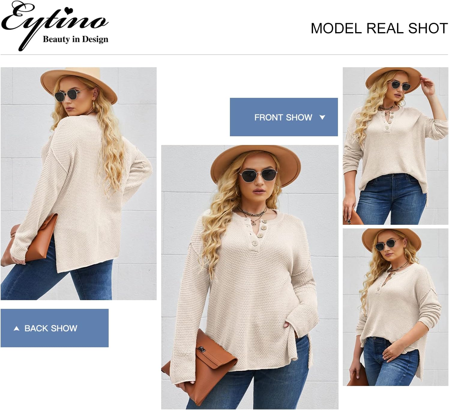 • Plus size button henley sweater is made of 55%Acrylic+45%Cotton, a soft knit material-it's so lovely and and a lightweight, breezy material.