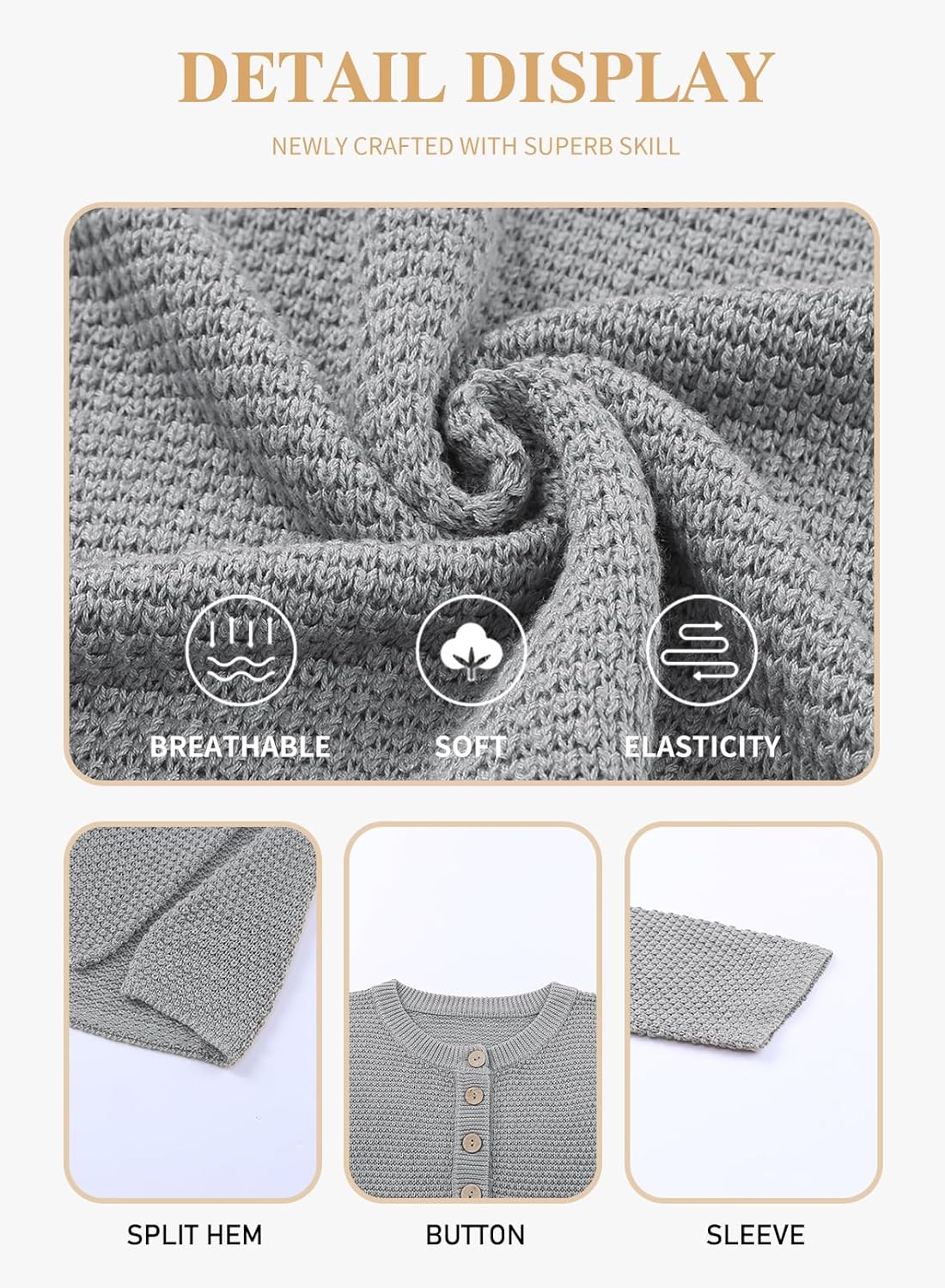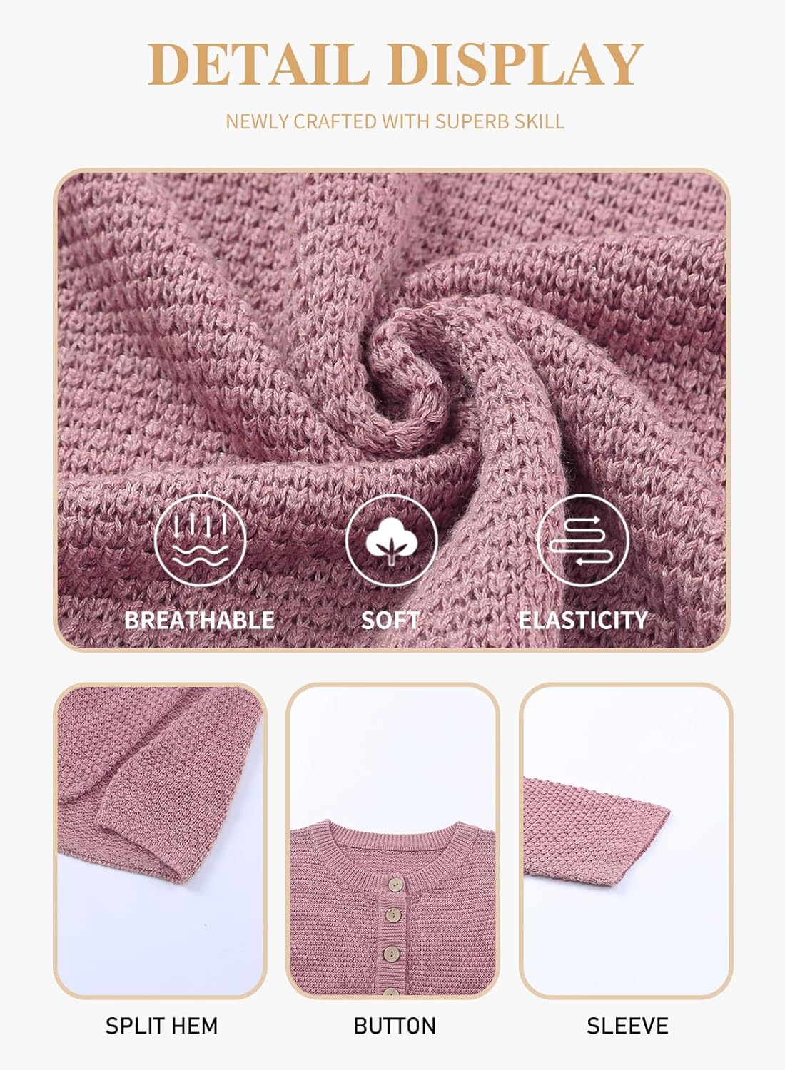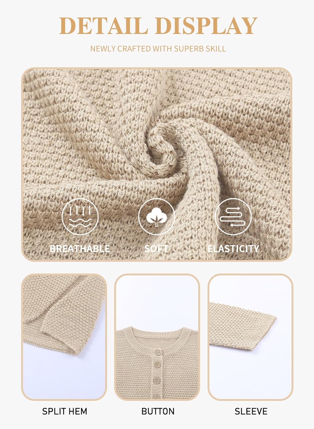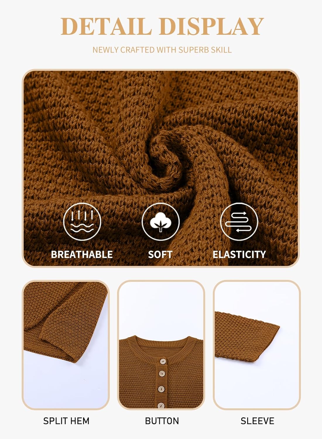 • Plus size button henley sweater is made of 55%Acrylic+45%Cotton, a soft knit material-it's so lovely and and a lightweight, breezy material.